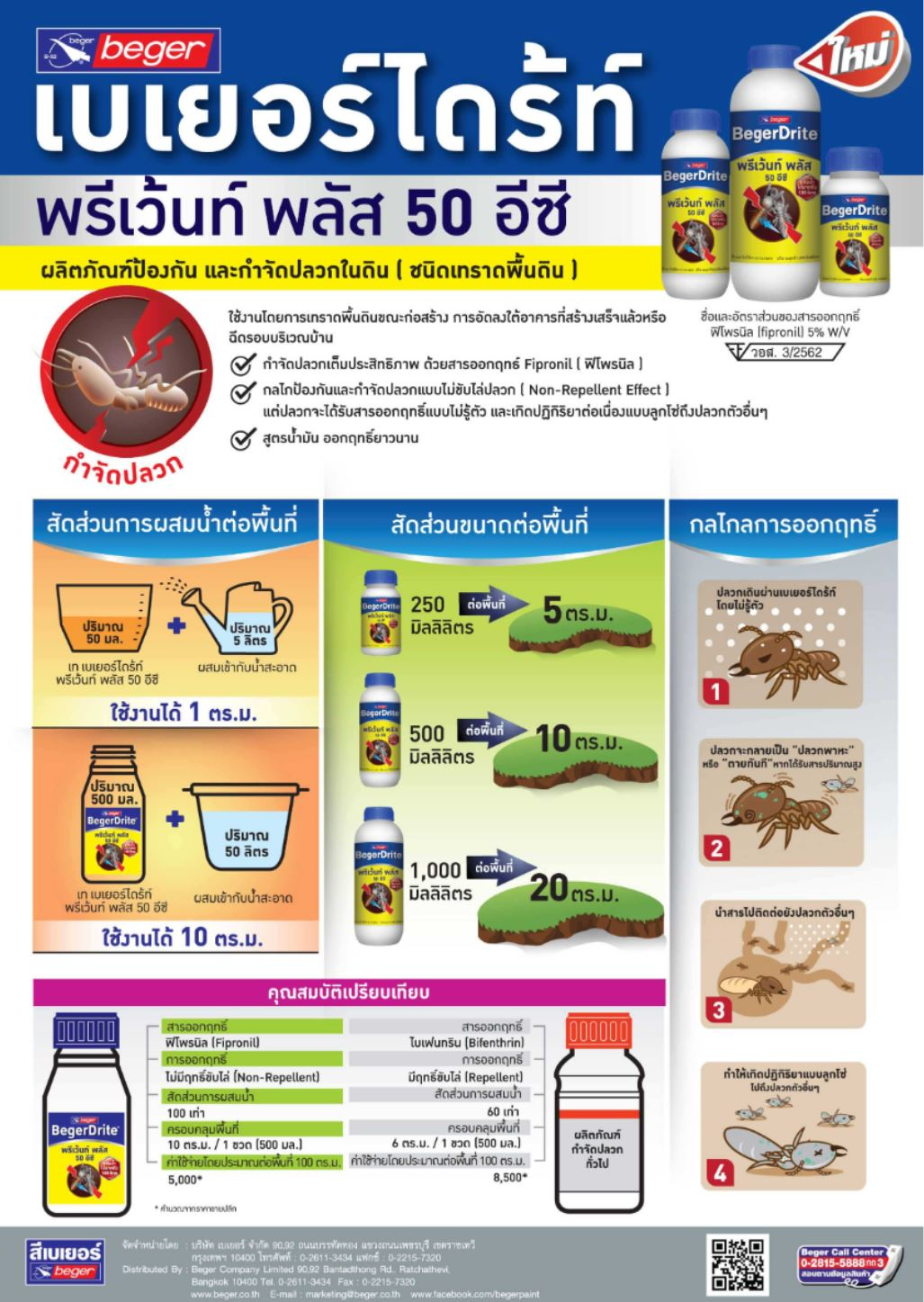 ทางเลือกใหม่ของผลิตภัณฑ์ป้องกันและกำจัดปลวก หนึ่งในสินค้าคุณภาพจากเบเยอร์ ใช้งานง่าย สูตรน้ำมัน ออกฤทธิ์ยาวนาน ป้องกันและกำจัดปลวกในดินอย่างมีประสิทธิภาพ