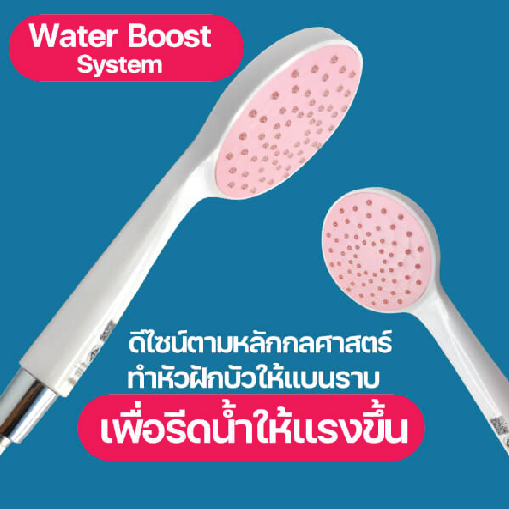 – มี 2 สี ผักบัวสีชมพู และฝักบัวสีฟ้า