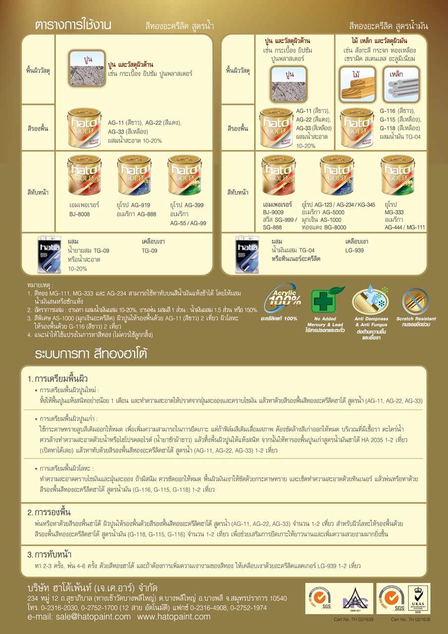 – สีทองอะคริลิกเฉดคลาสสิก สำหรับทาตกแต่งทั้งภายนอกและภายในอาคาร