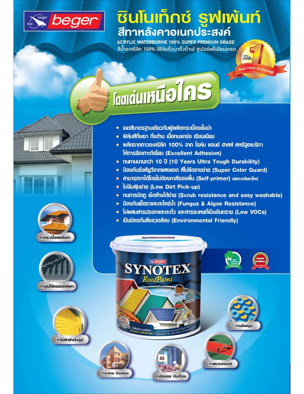 – ทาได้หลากหลายงาน เช่น หลังคา สนามกีฬา ลานอเนกประสงค์ ลานจอดรถ ตัดขอบกันเปื้อน อิฐบล็อกตัวหนอน งานปูน DIY ไม้ฝา เป็นต้น