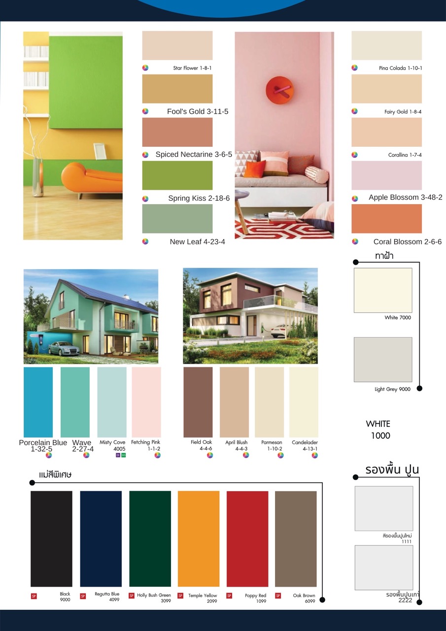 สีน้ำอะครีลิค 100% ฟิล์มสีด้านพิเศษ การยึดเกาะดีเยี่ยม ลดการสะท้อนแสงไฟ ทำให้ฝ้าดูเรียบเนียนสวย