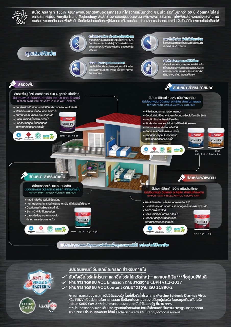– กำจัดและยับยั้งไวรัสและแบคทีเรียบนผนัง (ดูข้อมูลเพิ่มเติมในไฟล์ Catalog)