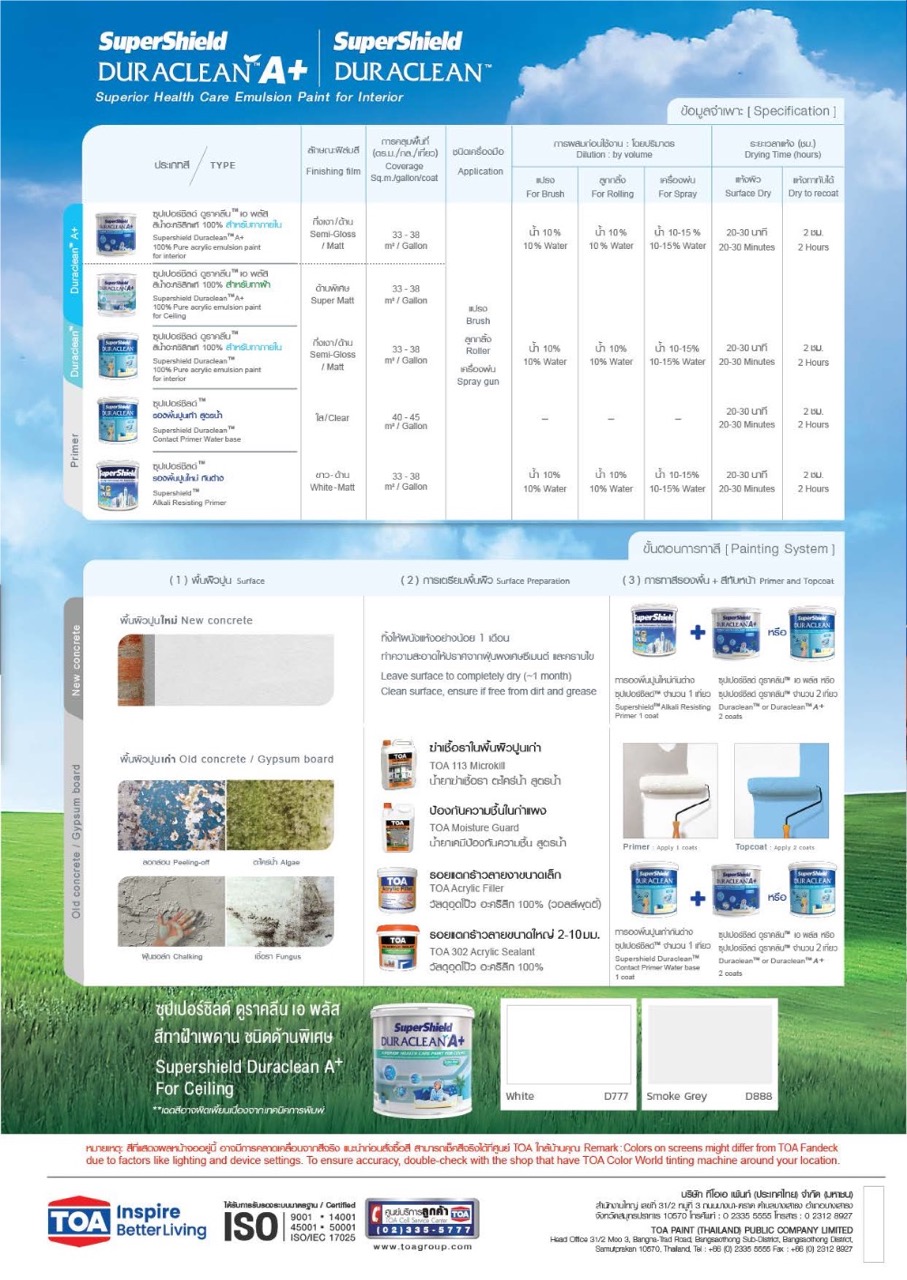 – ปลอดภัยจากสารระเหยเป็นพิษ VOCs. (Nearly zero VOCs) ได้ผ่านมาตรฐานฉลากเขียว ทั้งประเทศไทย และสิงคโปร์