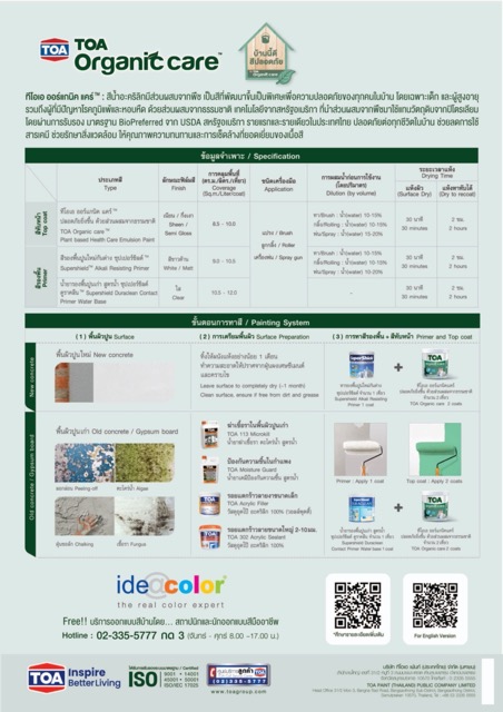 สีน้ำภายใน TOA Organic care SHEEN 3.5 ลิตร เบส A
