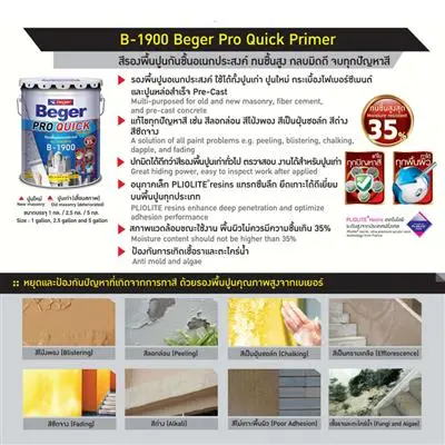 เบเยอร์ โปร ควิก ไพรเมอร์ บี-1900 สีรองพื้นปูนอเนกประสงค์ ทนชื้นสูง 40%