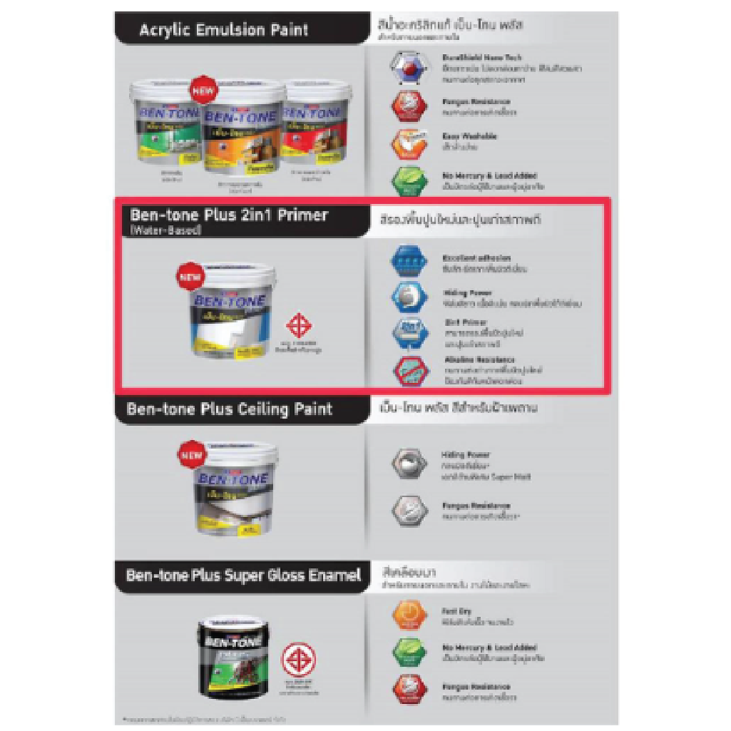 สีรองพื้นเบ็น-โทน พลัส ทูอินวัน สำหรับปูนใหม่ และปูนเก่าสภาพดี