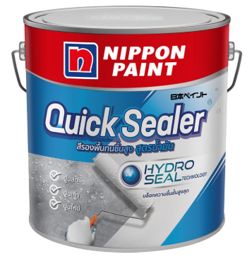 NIPPON PAIN QUICK SEALER สีรองพื้นอเนกประสงค์สูตรน้ำมัน ประเภท อะคริลิก เรซิน เนื้อสีมาก สวยสดทนนาน ป้องกันปัญหาสีลอกล่อน สีพอง ทนความชื้นสูง มีเนื้อสีขาว แทรกซึมพื้นผิวดีเยี่ยม ยึดเกาะสูง มาพร้อมเทคโนโลยี HYDRO SEAL ปิดรูพรุ่นของผนังทุกรูปแบบ ทนทานต่อการเกิดคราบด่าง คราบเกลือ ป้องกันการเสื่อมสภาพของฟิล์มสี และป้องกันเชื้อรา และตะไคร่น้ำ สำหรับปูนเก่า ปูนใหม่ ปูนสด สามารถทาทับในปูนที่ฉาบได้ 7-10 วัน