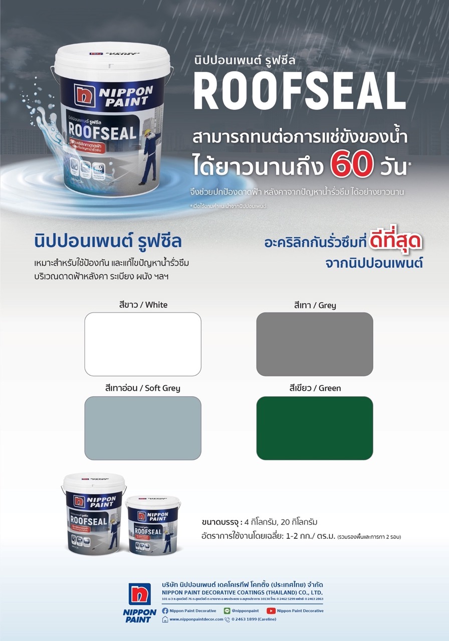 อะครีลิคทากันซึม ดาดฟ้า/หลังคา NIPPON ROOFSEAL 4 กก. สีขาว